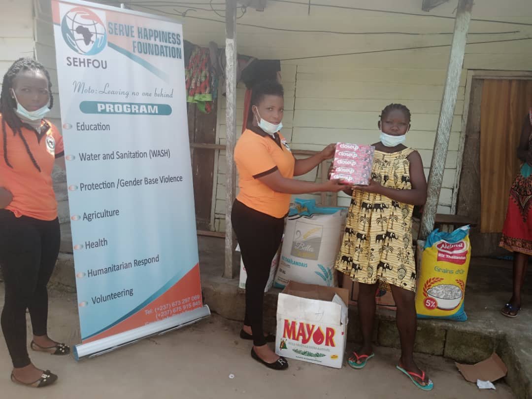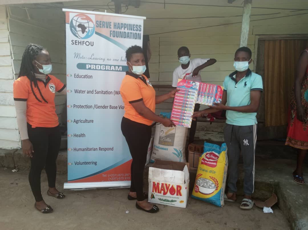 Serve Happiness Foundation Supported 30 vulnerable internally displaced Children from Bafaka Balue Village from Primary to Secondary Levels Schooling at Pendaboko, Fiko Sub, Division, Moungo Division, Littoral Region of Cameroon with Food Items, Health, and WASH facilities.